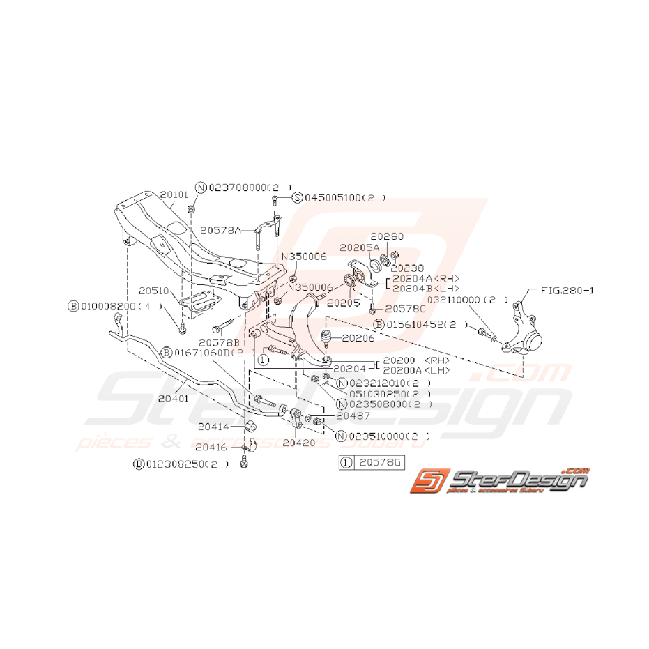 Schéma de Train Avant Origine Subaru GT 1997 - 1998
