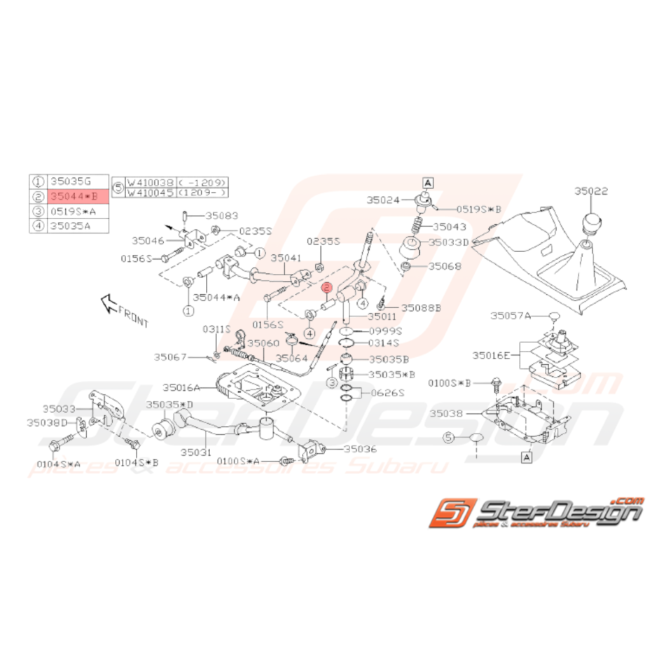Entretoise de levier de vitesse SUBARU GT 05/95-97 WRX 01-07 STI 08-14