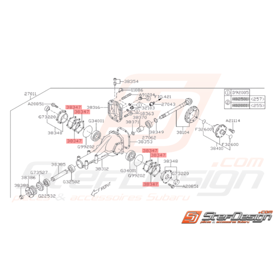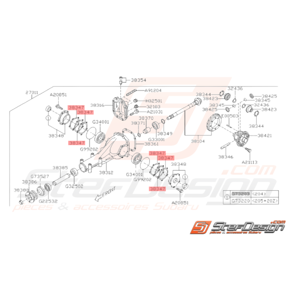 Entretoise Roulement Différentiel Arrière Subaru GT 93-00 WRX STI 01-14