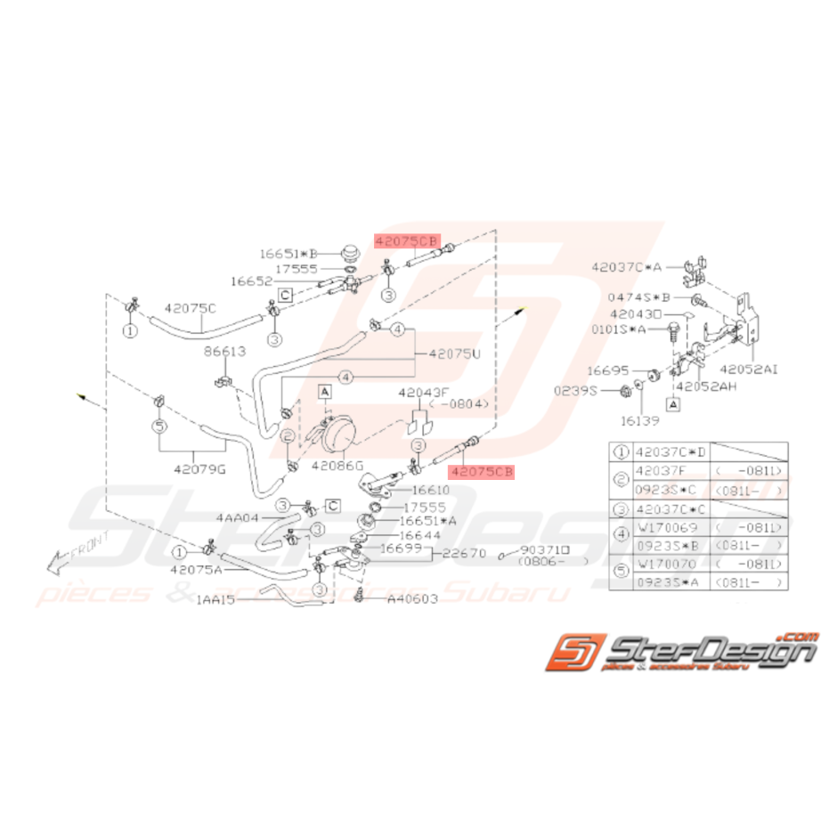 Flexible essence pour SUBARU STI de 2008 à 2014.