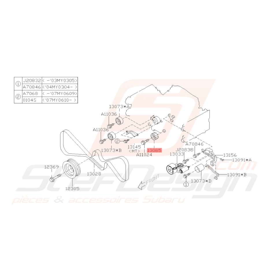 Galet cranté SUBARU GT 93-00 WRX/STI 01-19 Forester Turbo 97-02/05-07