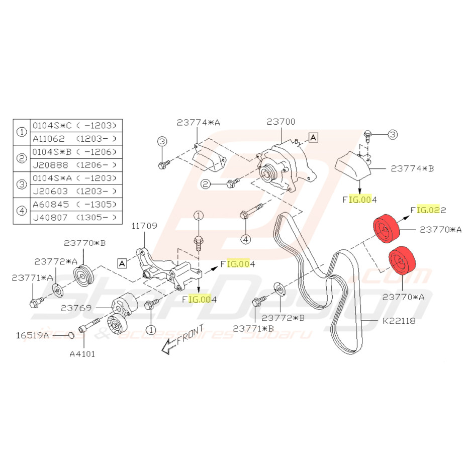 Galet tendeur de courroie alternateur pour Subaru BRZ.