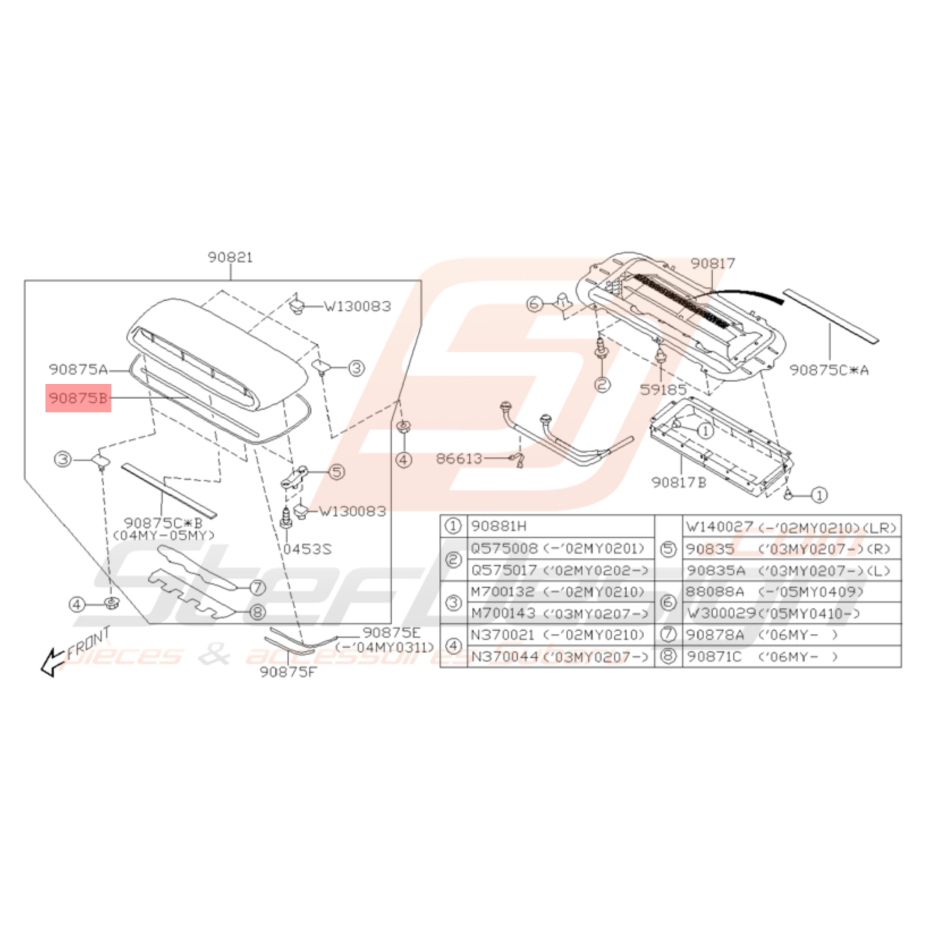 Garniture de Prise d'Air pour Subaru WRX STI de 2006 à 2007.