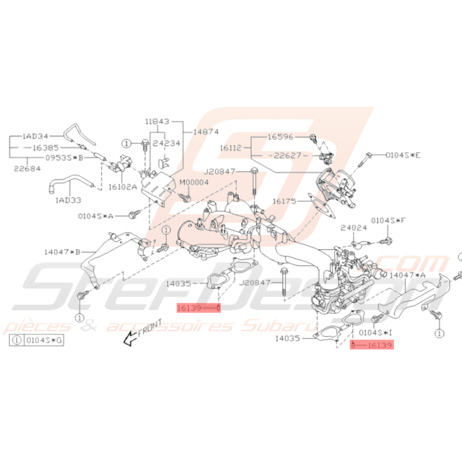 Goupille de fixation de joint d'admission pour Subaru WRX d'Avril 2003 à 2010 et STI d'Avril 2003 à 2019.