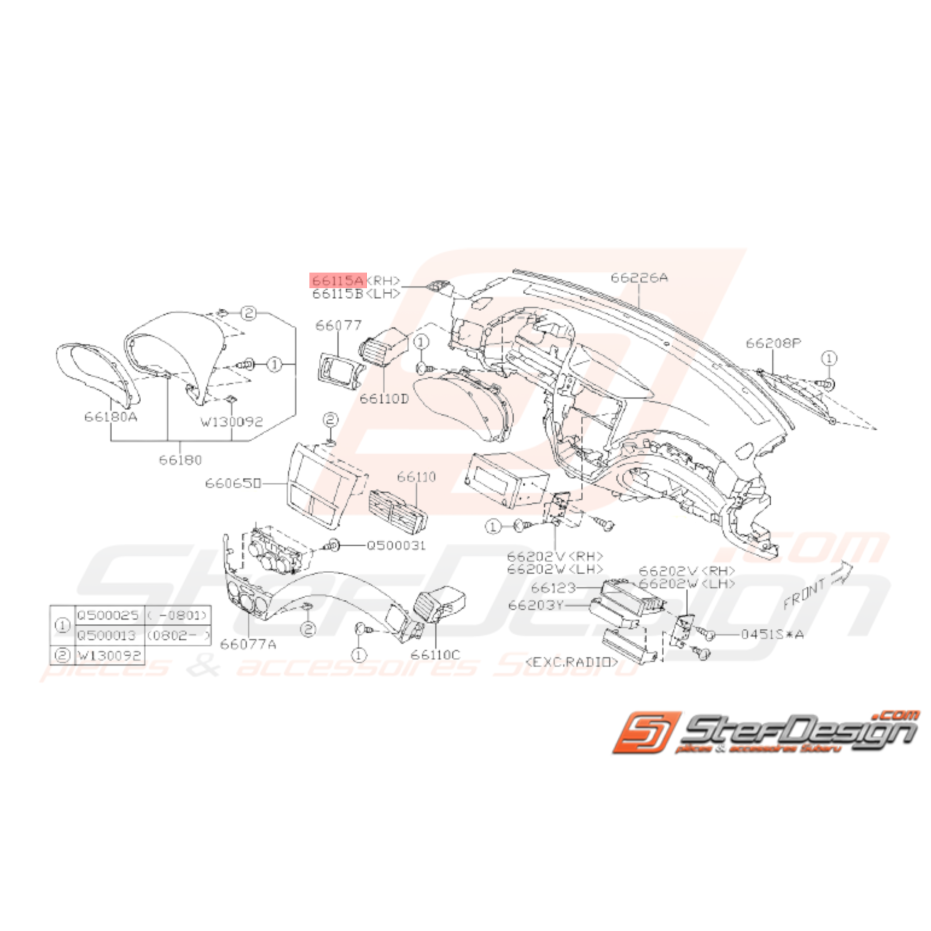 Grille de Dégivreur Avant Origine Subaru WRX 2009 - 2010