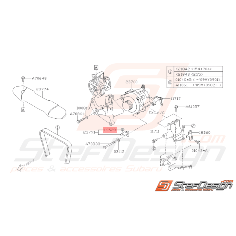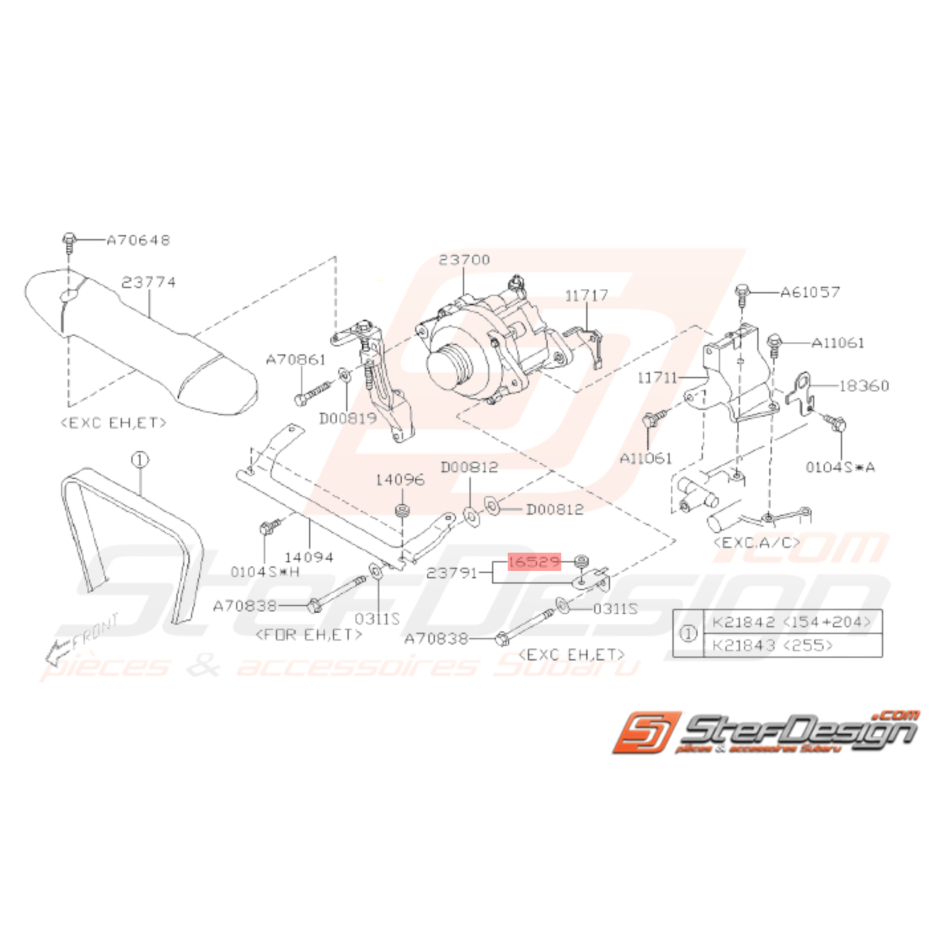 Guide couvercle de courroie d'alternateur pour SUBARU WRX STI de 2001 à 2014.