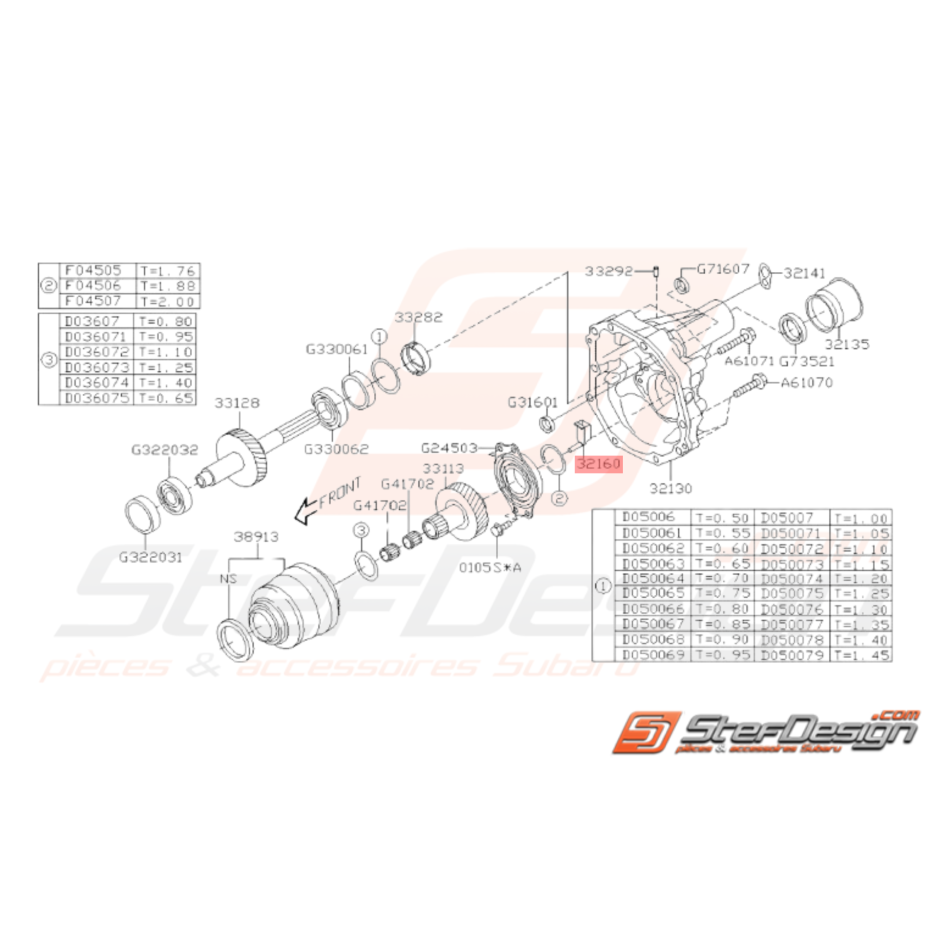 Guide d'huile de boite de transfert pour SUBARU STI de 2001 à 2014.
