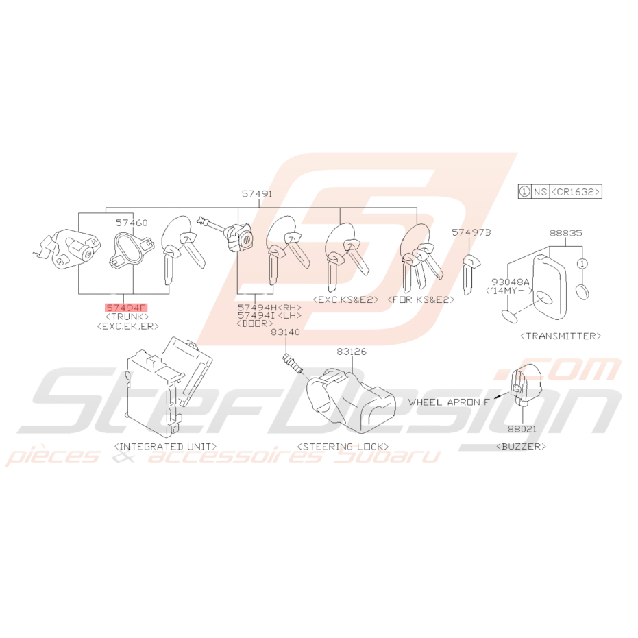 Jeu de clé de Coffre Origine Subaru BRZ 2013 - 2014