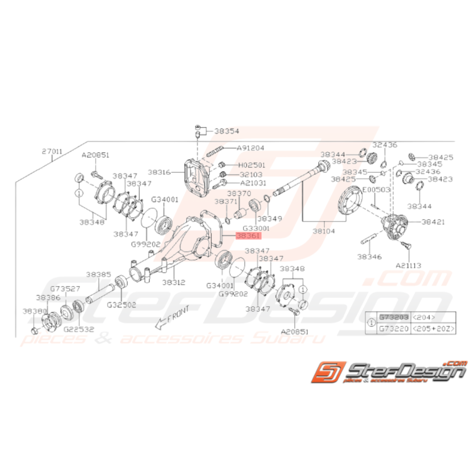 Joint carter de pont origine Subaru GT 1993 - 2000 WRX 2001 - 2010