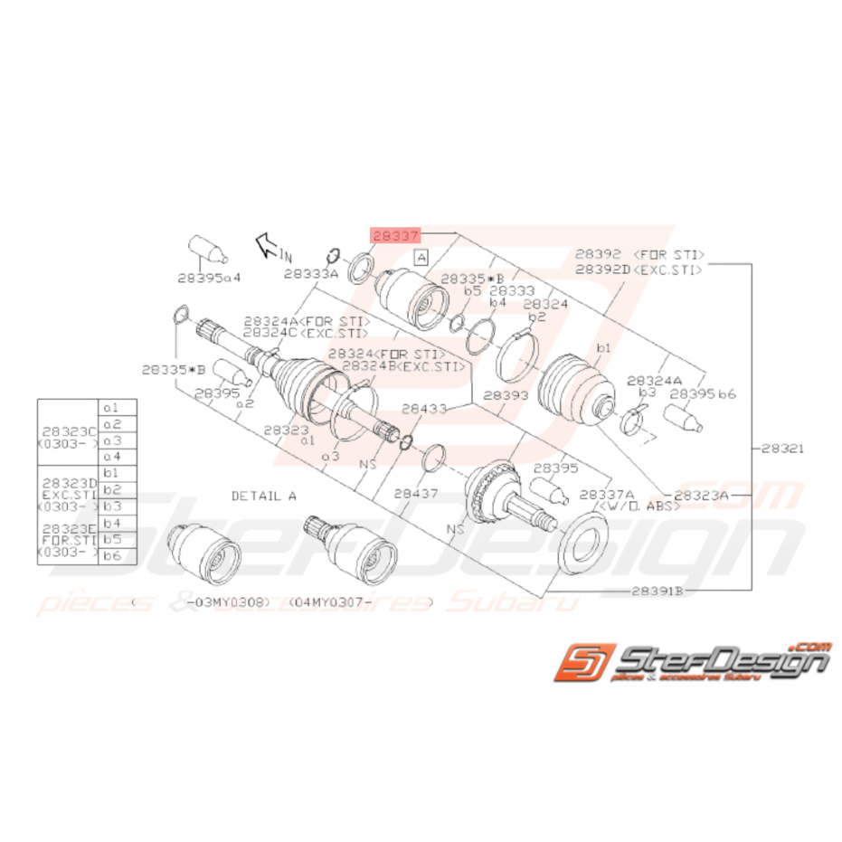 Joint d'étanchéité d'huile de cardan côté pont GT 93 - 00 WRX STI 01-03