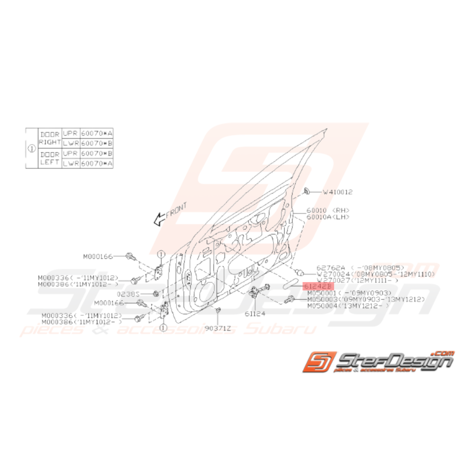 Joint d'étanchéité pour Subaru WRX STI de 2008 à 2014.