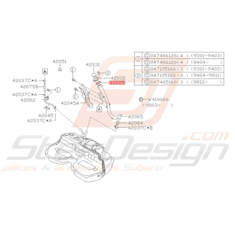 Joint de goulotte de remplissage pour SUBARU GT de 1993 à 2000. WRX STI de 2001 à 2014.