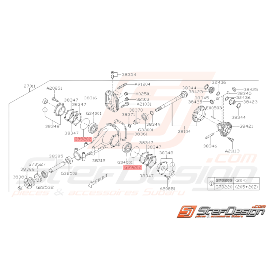 Joint torique de pont arrière Subaru GT 1993-2000 WRX STI 2001-2014