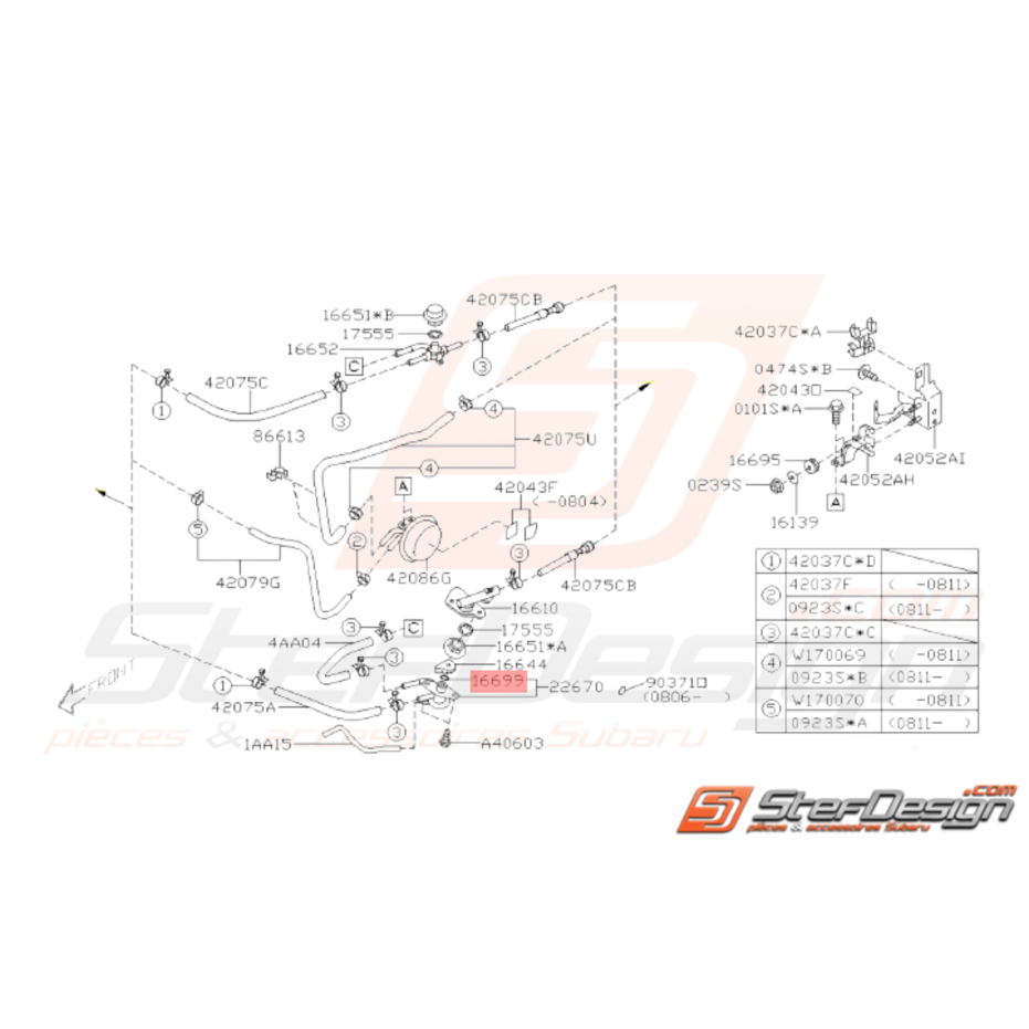Joint torique régulateur pression d'essence pour Subaru STI de 2008 à 2014.