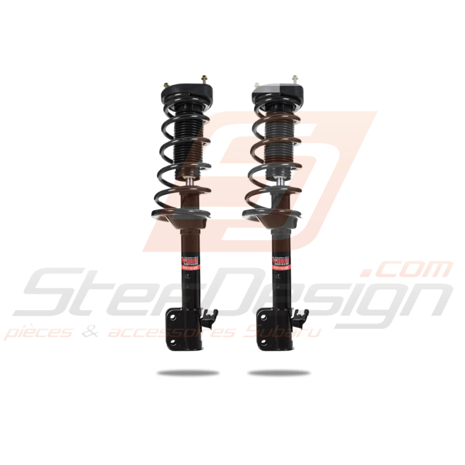 Système complet préassemblé : ressorts, amortisseurs, butées, soufflets et coupelles prêts à être montés.