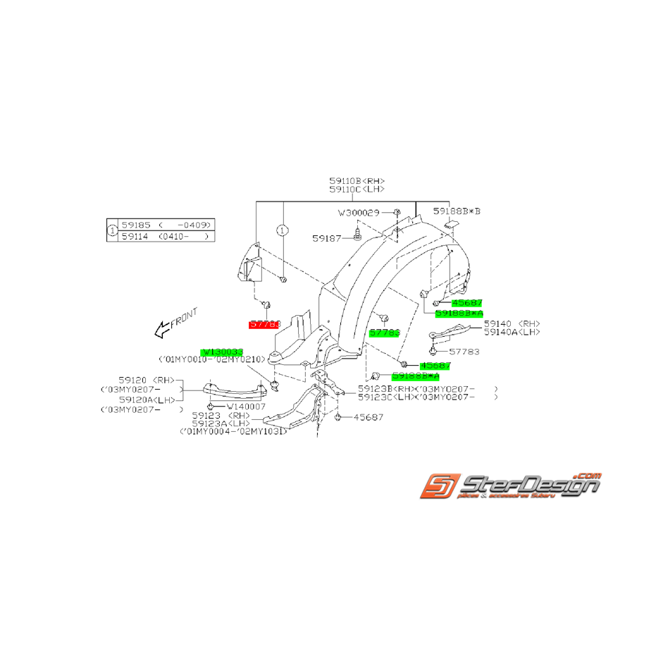 Kit de montage de pare boue SUBARU WRX/STI 01-02