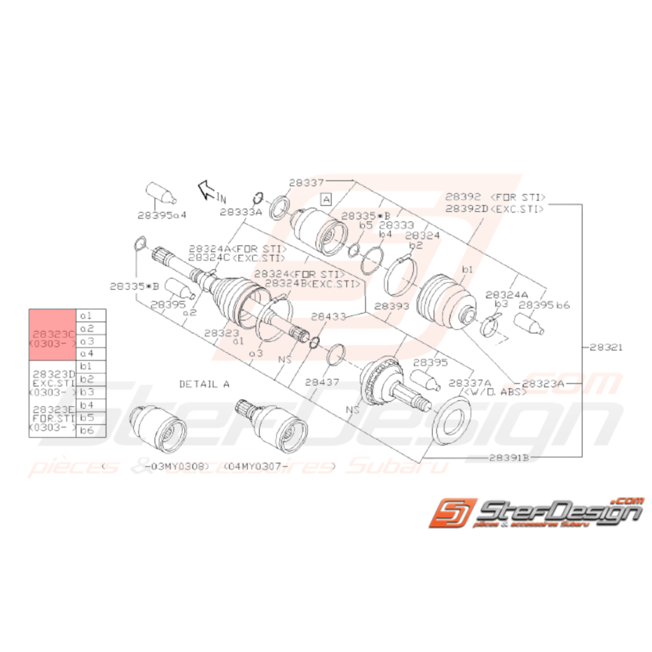 Kit de Soufflet pour Subaru STI de Mars 2003 jusqu'à la fin de l'année 2003.
