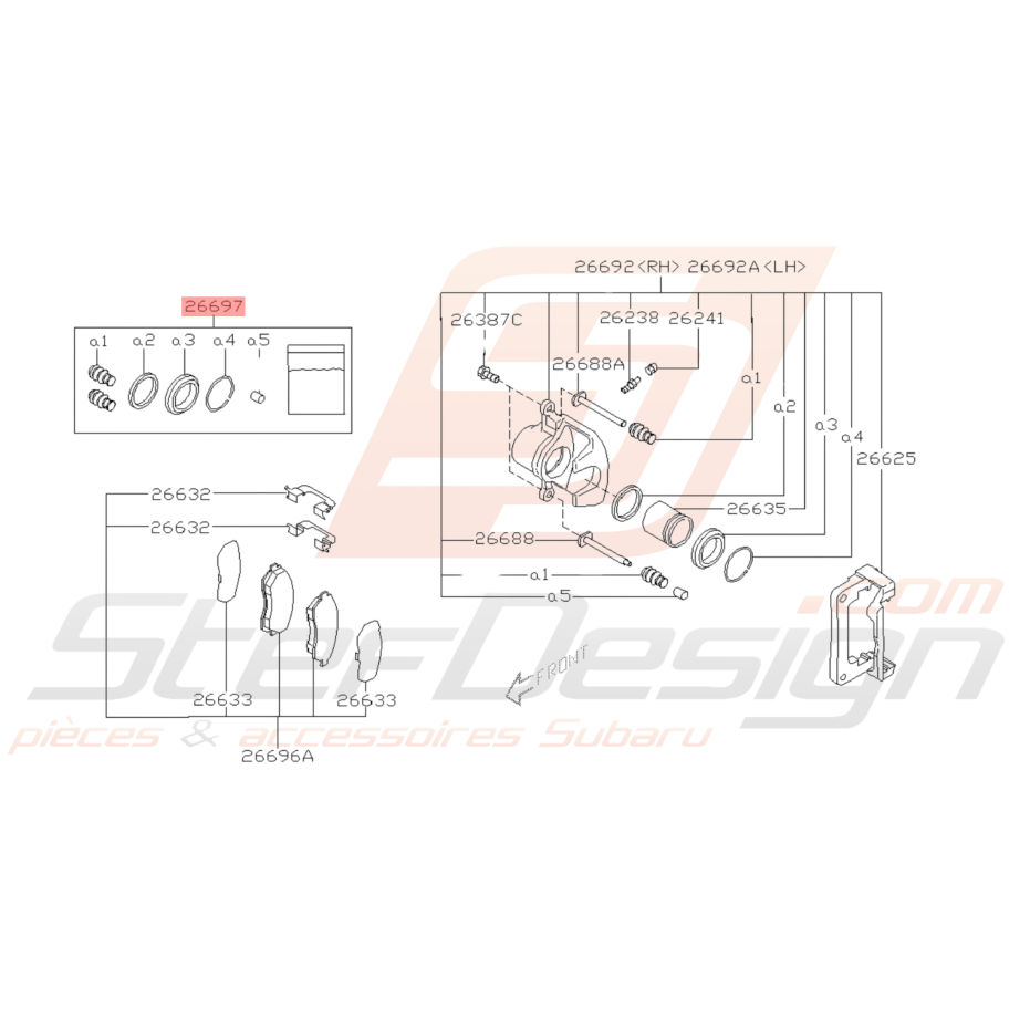 Kit réparation prévu pour les deux étriers de frein arrière vendu avec de ma graisse Origine Subaru