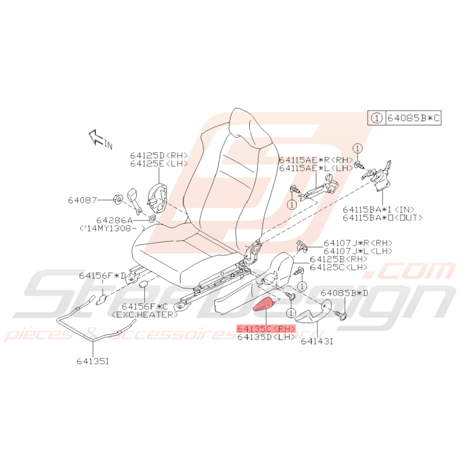 Levier de Réglage de Siège Origine Subaru BRZ 2013 - 09/2014