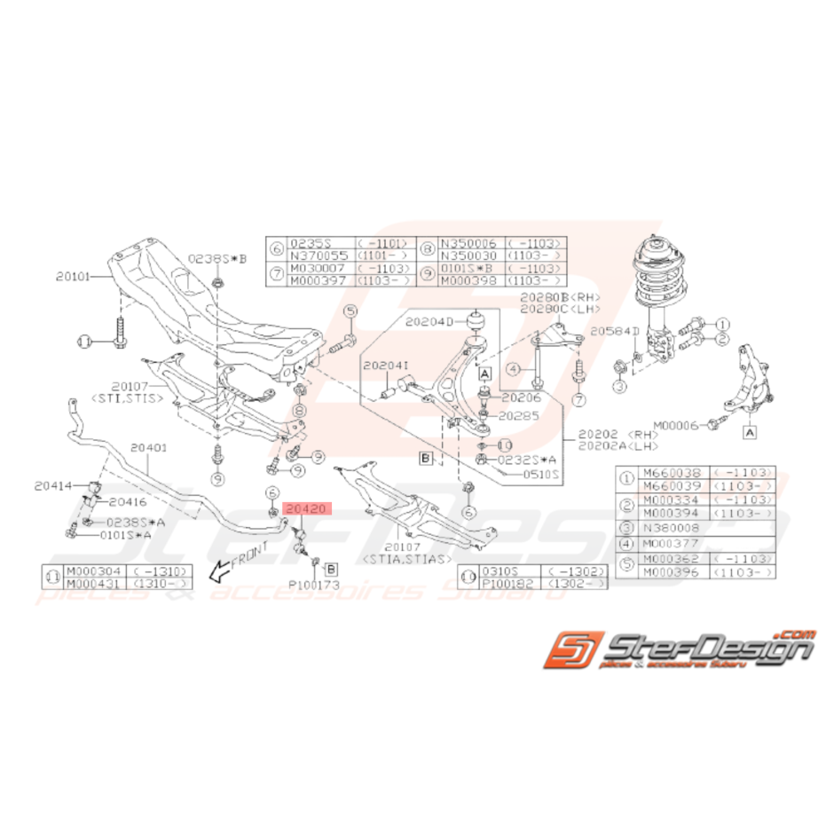 Links avant de barre stabilisatrice avant WRX STI 01-14 LEGACY 2003