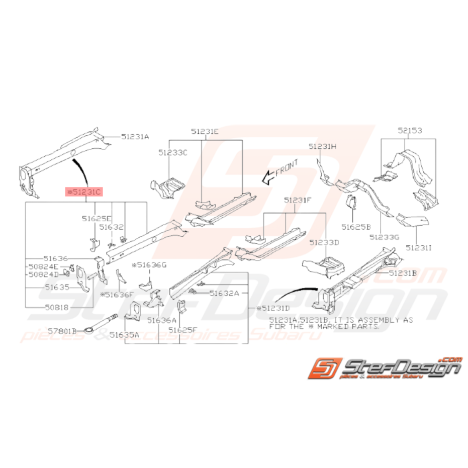 Longeron Avant pour Subaru WRX STI de 2008 à 2014.