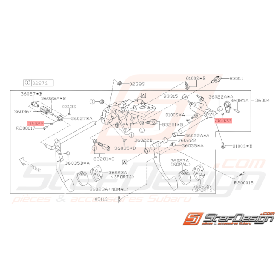 Manchon de pédalier Origine SUBARU GT 98-00 WRX STI 01-14 BRZ 13-19