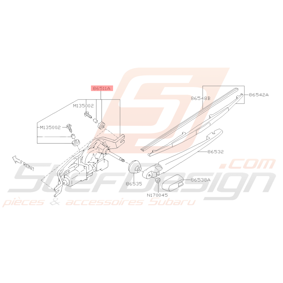 Moteur et Mécanisme d'essuie-glace pour Subaru WRX STI de 2008 à 2009.