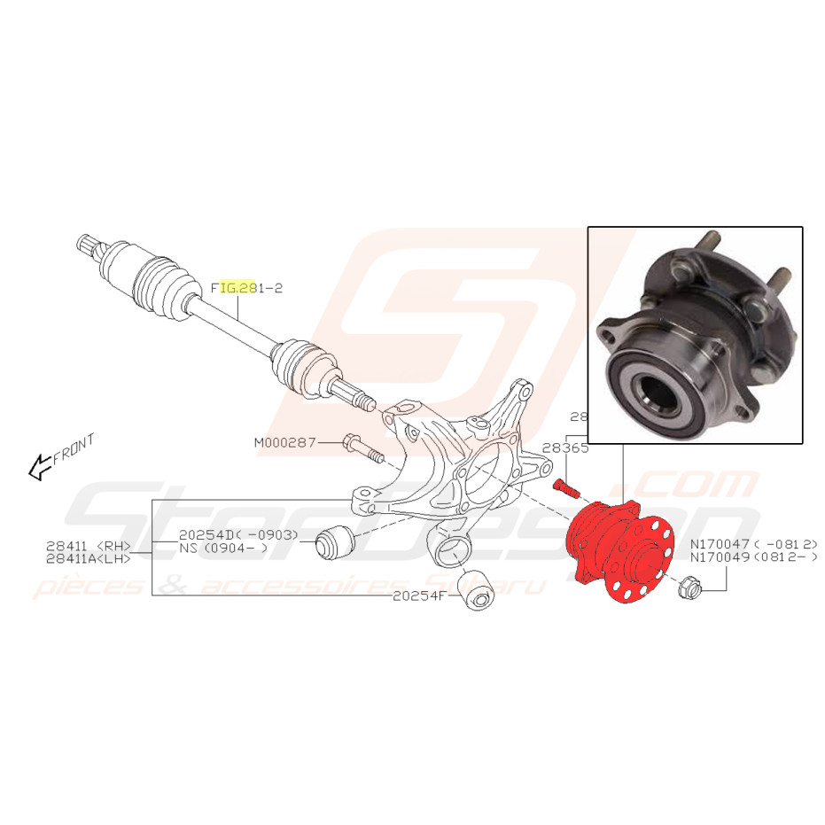 Moyeu de roue arrière pour Subaru