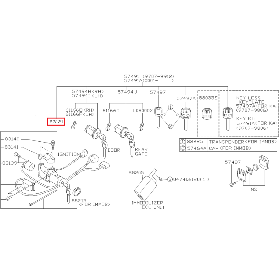 Neiman sans immobilisateur pour Subaru Forester Turbo de 05/2000 à 2002