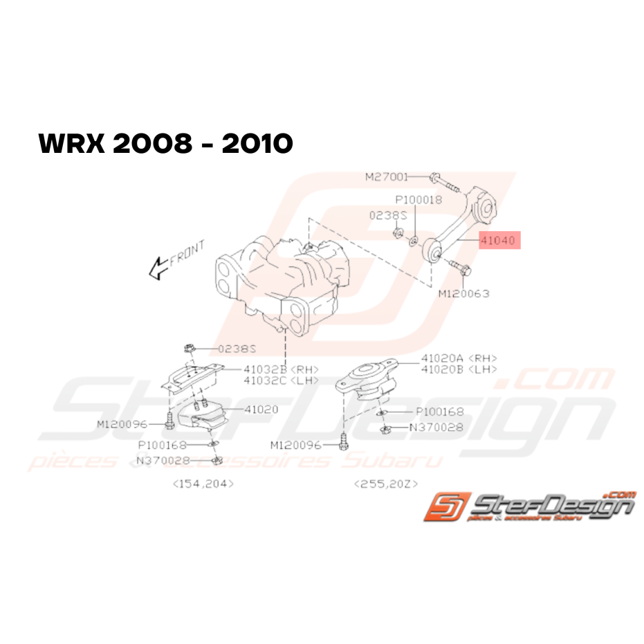 Os de boite appartenant à l'ensemble de support de boite pour Subaru GT de 1999 à 2000 et WRX STI de 2001 à 2019.