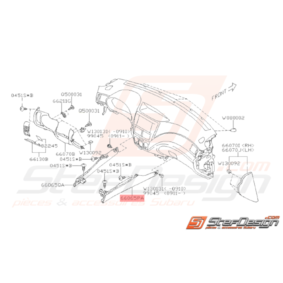 Panneau Centre Inférieur de Tableau de bord pour Subaru WRX de 2009 à 2010 et STI de 2011 à 2014.