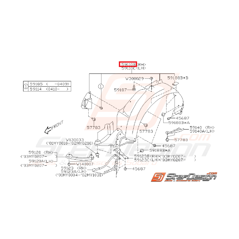 Pare boue avant coté conducteur WRX/STI 01-02