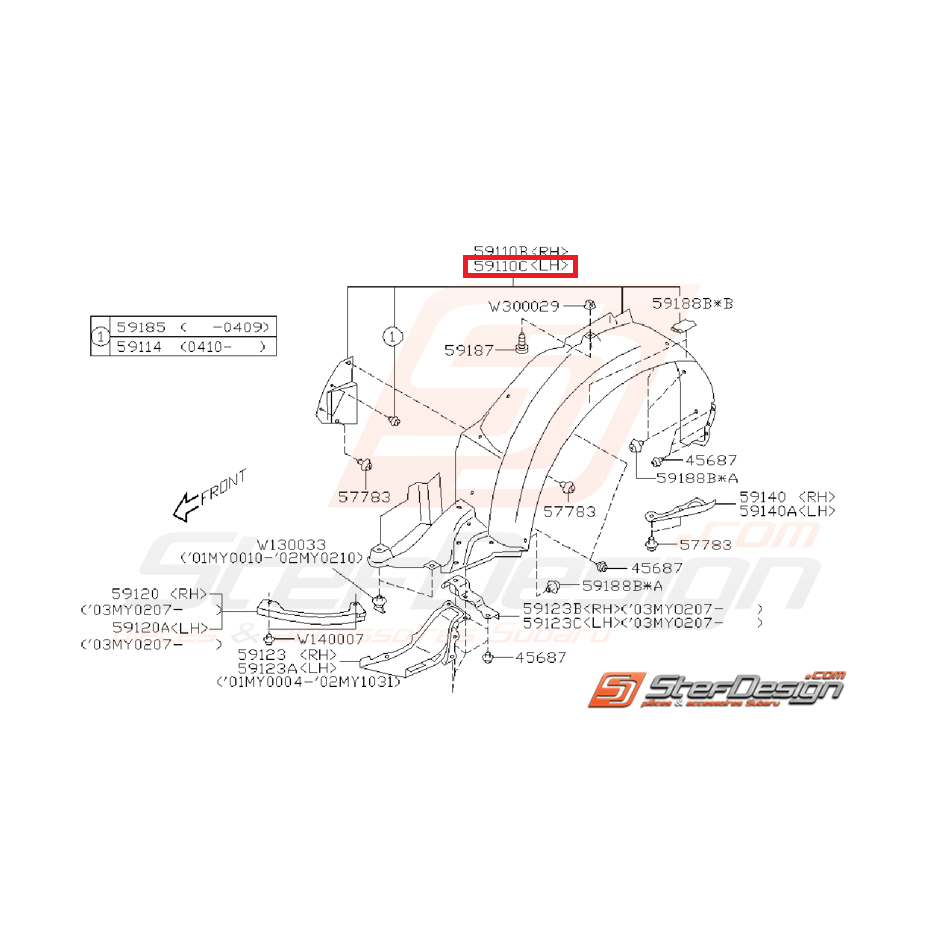 Pare boue avant côté passager WRX/STI 01-02