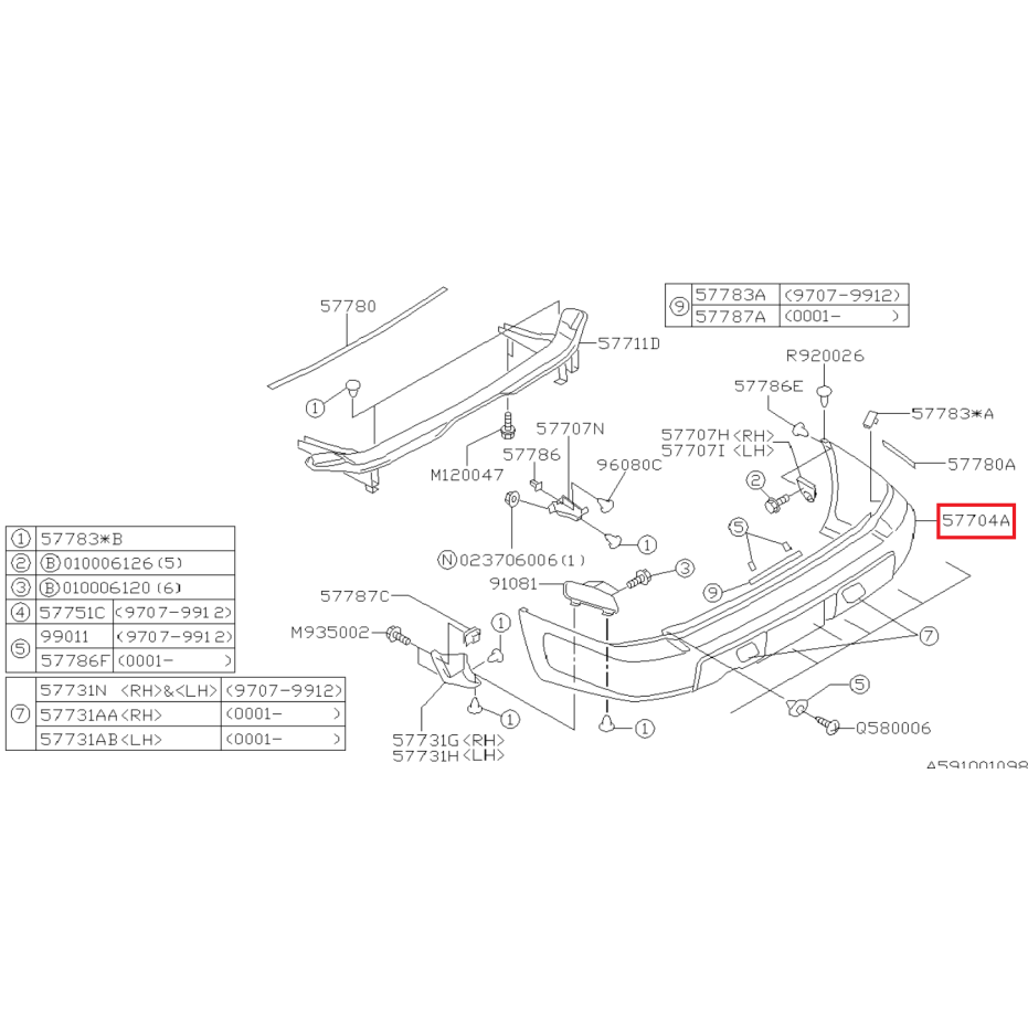 Pare Choc Arrière Origine Subaru Forester Turbo 97-11/99