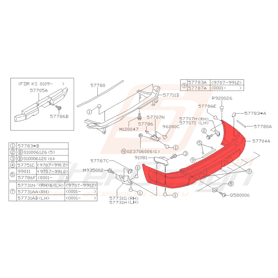 Pare-choc arrière pour subaru forester SF5 08/99-02