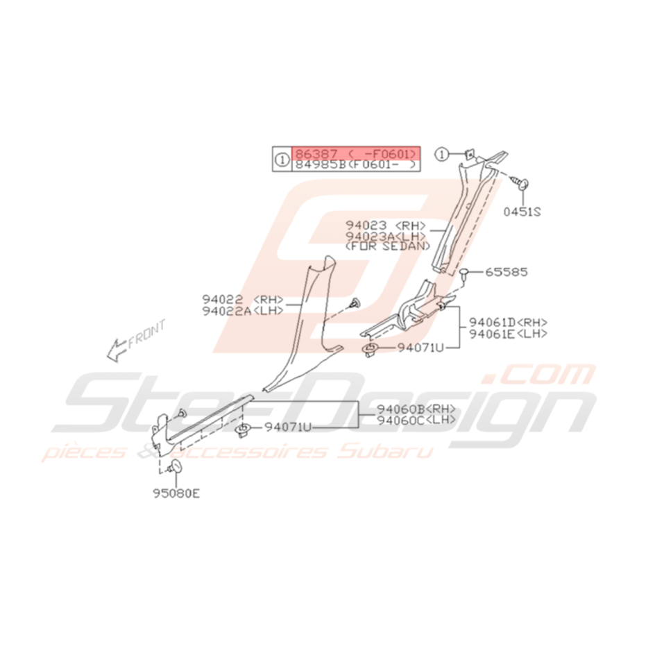 - Garnitures Intérieures Inférieures pour Subaru WRX STI de 2001 à Janvier 2006.