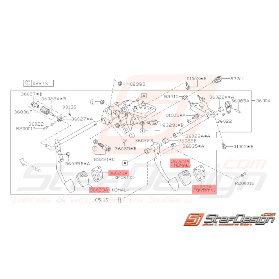 Pédale aluminium frein et embrayage Origine Subaru WRX STI 01-14 BRZ Manuel 13-19