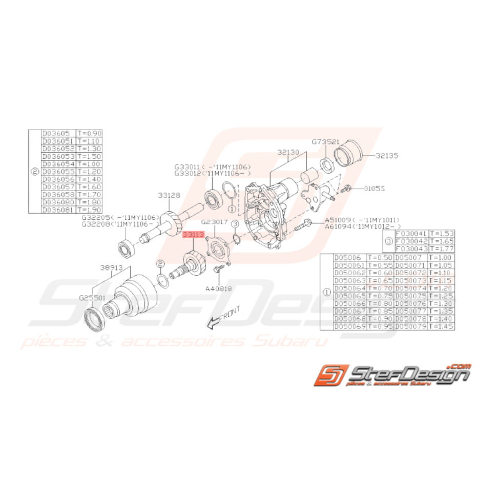 Pignon de Transfert Boite 5 Subaru WRX06-10 / 2.0 RS 07 FORESTER 05-07