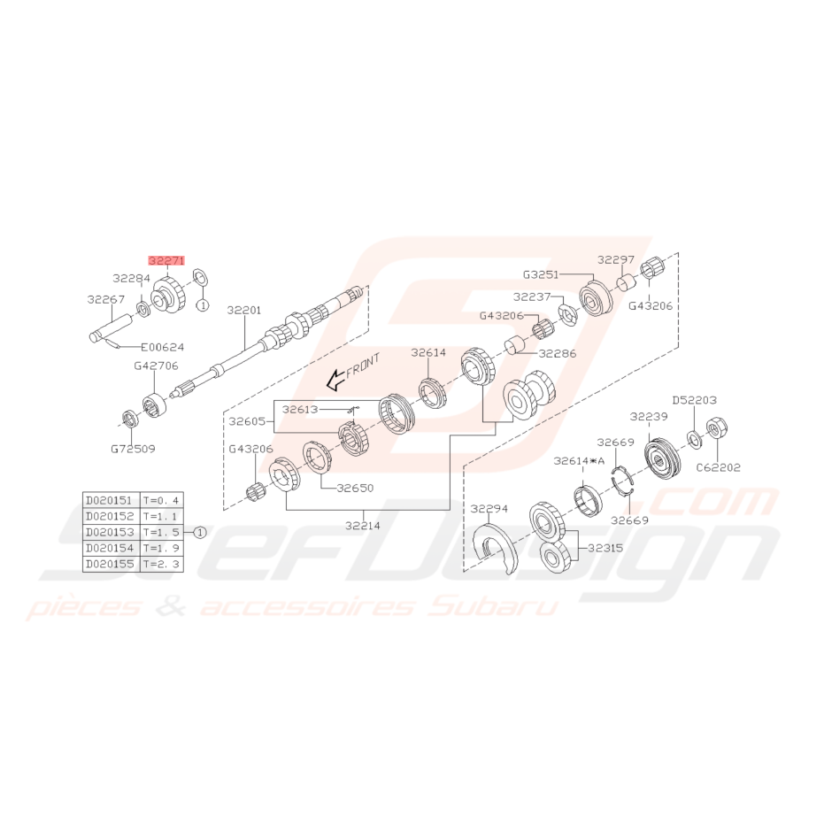 Pignon intermédiaire marche arrière Subaru WRX 01/10/01 - 06