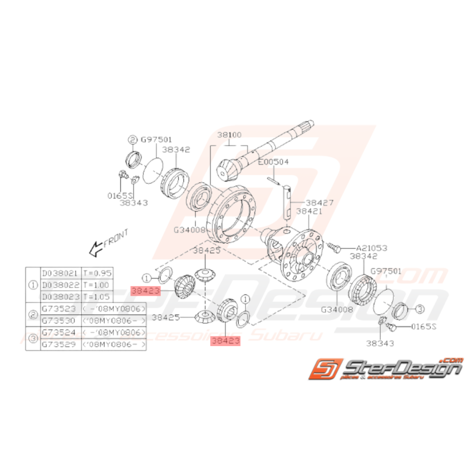 Pignons différentiel avant boite auto SUBARU LEGACY 03 WRX 12/01-10 STI 01-02 FORESTER 05-07