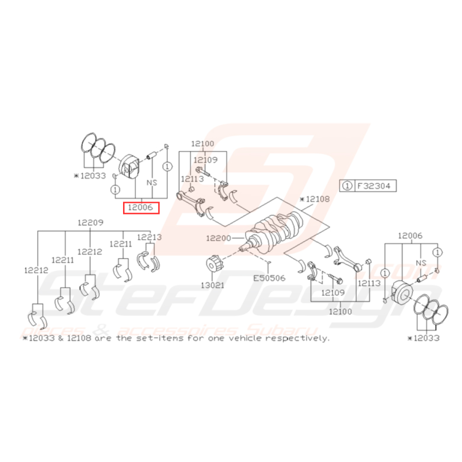 Piston origine pour SUBARU STI de 2006 à 2019.