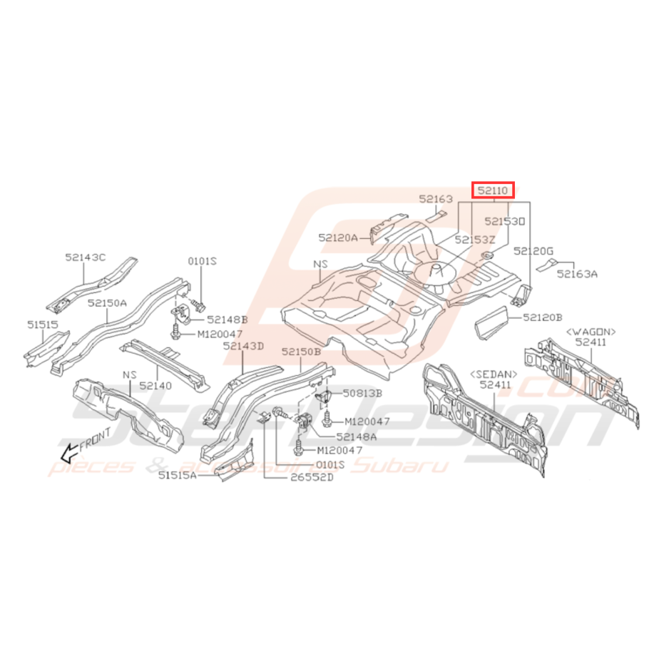 Plancher Arrière pour Subaru STI de 2006 à 2007.