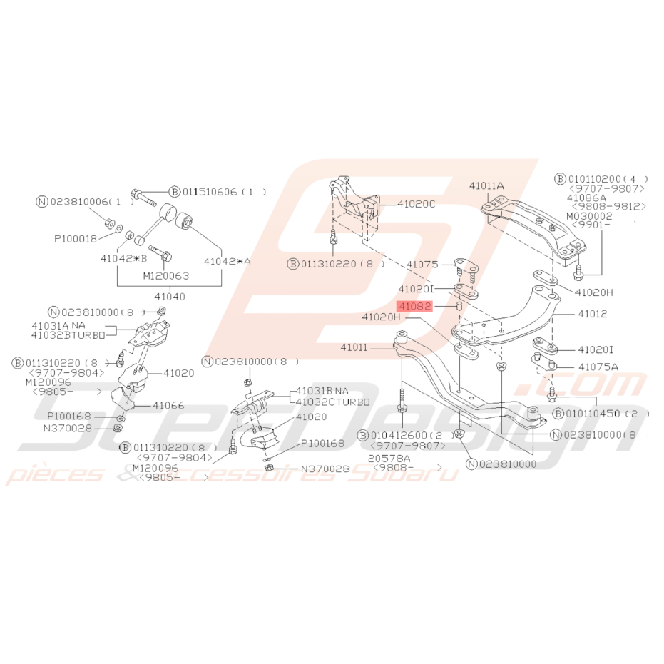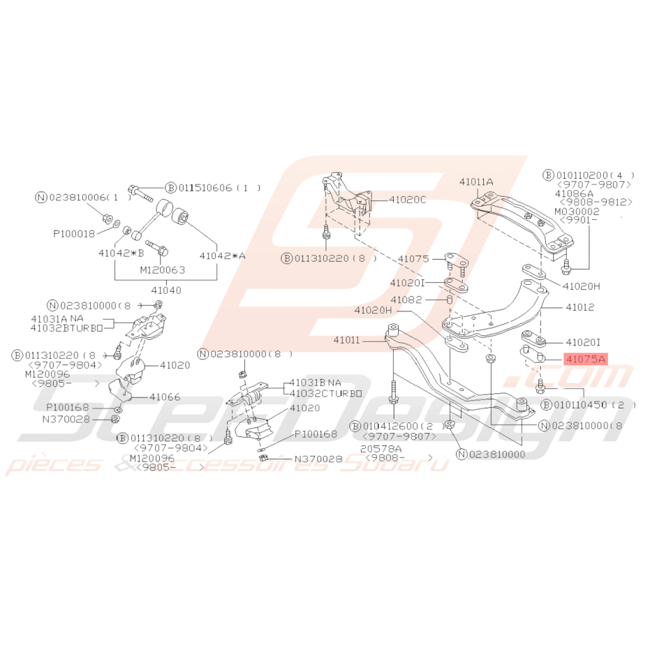 Plaque de Poutre transversale Support de Boite Subaru FORESTER 97-02/05-07 GT 97-00 WRX/STI 01-11
