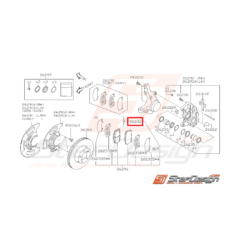 Plaquette inox maintient de plaquette de frein avant étrier subaru GT 99-00 -WRX 01-07