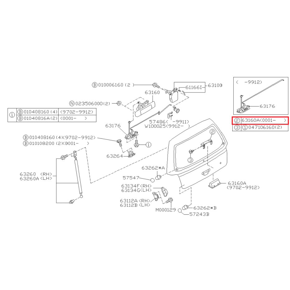Poignée de Hayon Origine Subaru Forester Turbo 2000-2002