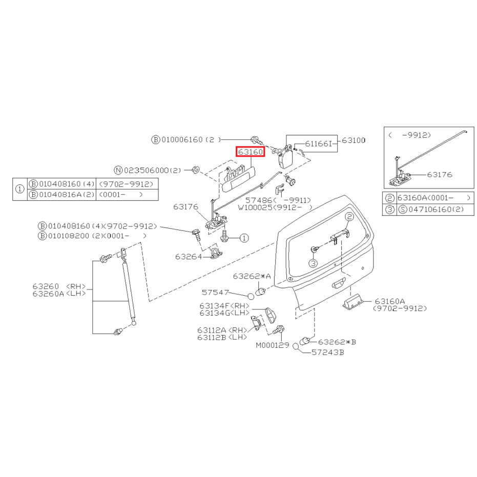 Poignée de Hayon Origine Subaru Forester Turbo 08/1999 - 2002