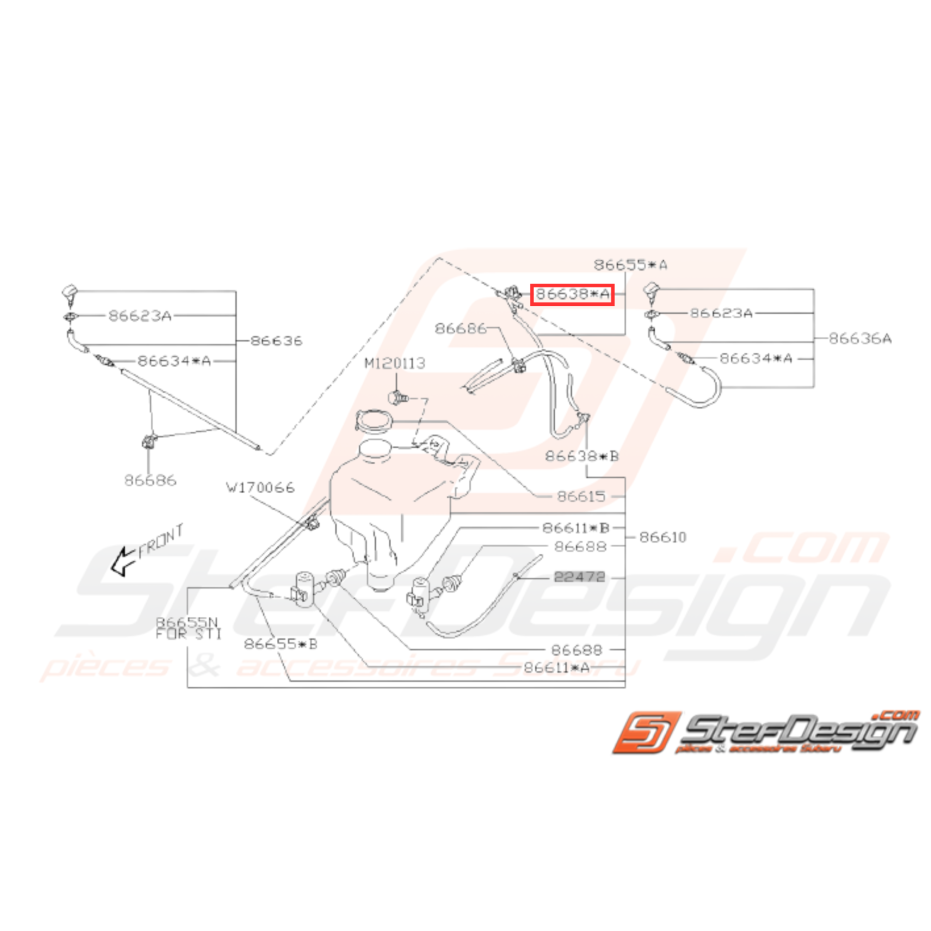Raccord en t Durite Lave-glace avant pour Subaru GT de 1993 à 2000 et WRX STI 2001 à 2007.