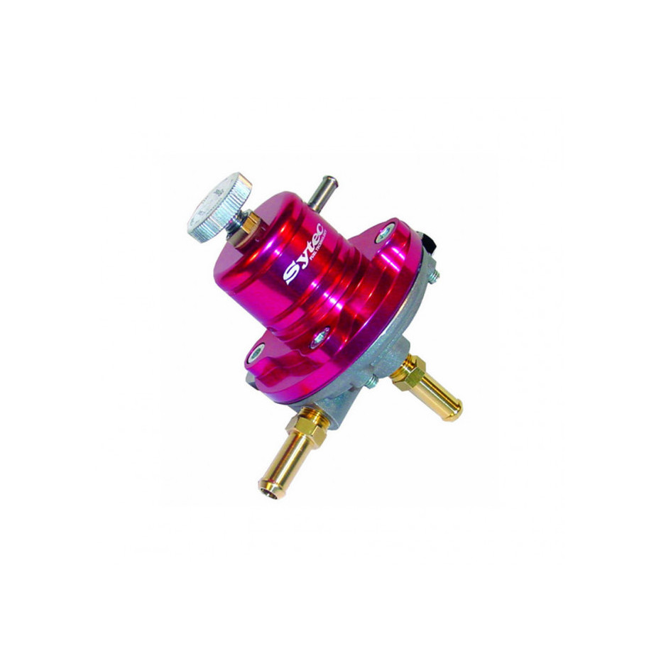 Régulateur de pression d'essence SYTEC doté d’une connexion 1/8 NPT pour installer le manomètre avec deux raccords lisses de 8mm,