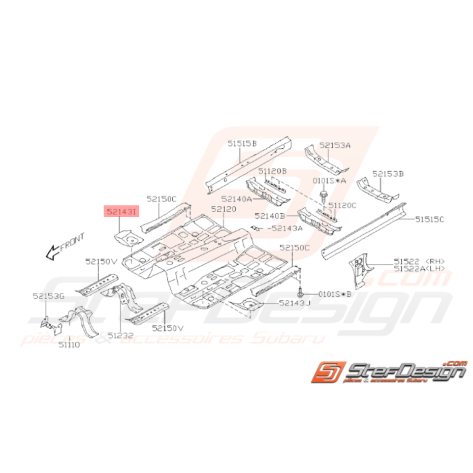 Renfort Plancher Supérieur pour Subaru WRX STI de 2008 à 2014.