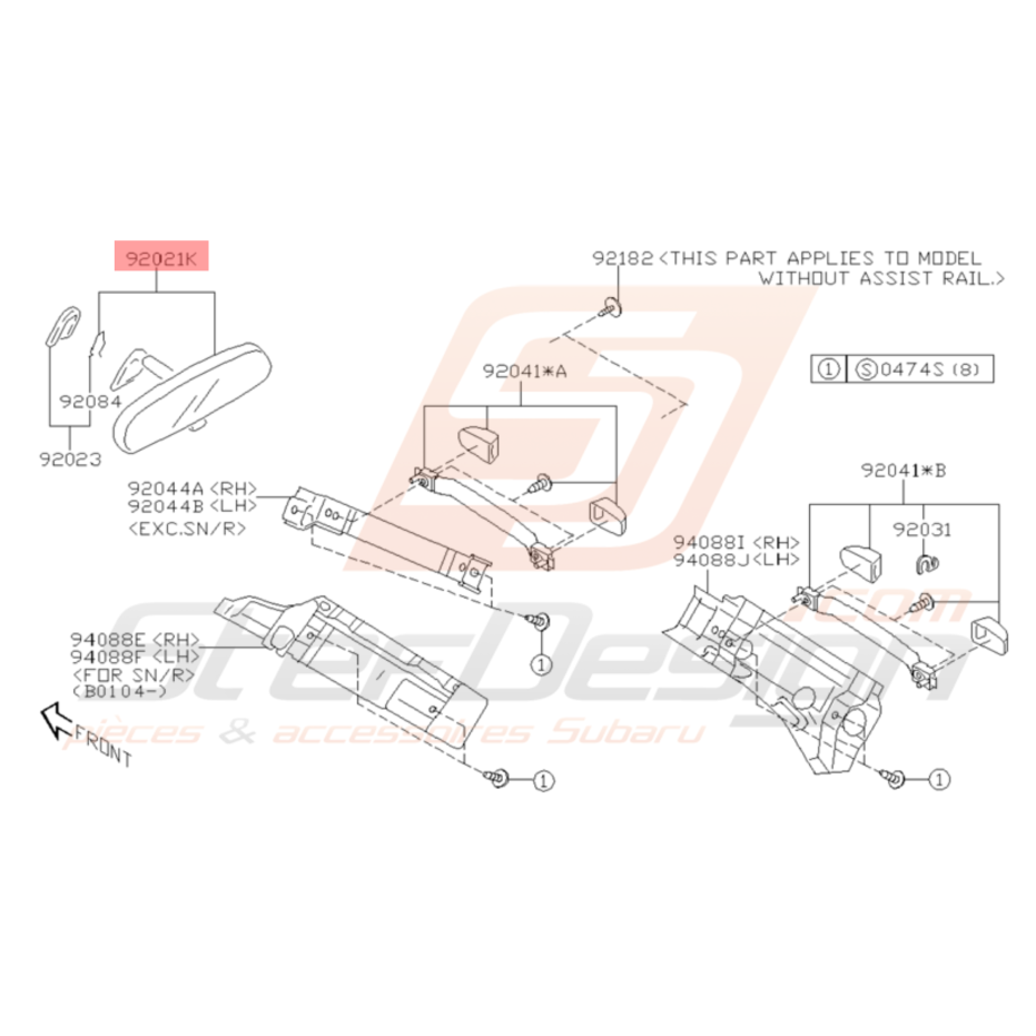 Rétroviseur intérieur pour SUBARU WRX et STI de 2006 à 2014.